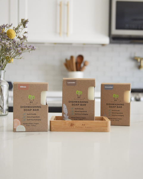 These plastic-free dishwashing soap bars suds really well for hand washing dishes, cutting grease, and even cleaning your kitchen! Available in 2 varieties.