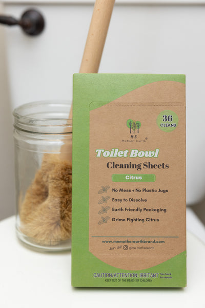 Mother Earth Approved: Most conventional toilet bowl cleaners come in bulky plastic bottles filled mostly with water and synthetic dyes. Our lightweight cleaning sheets skip the plastic bottle, cut shipping weight, and use simple, purposeful ingredients instead of the harsh blue chemicals found in traditional cleaners. Packaged mindfully in fully recyclable or compostable kraft paper packaging.